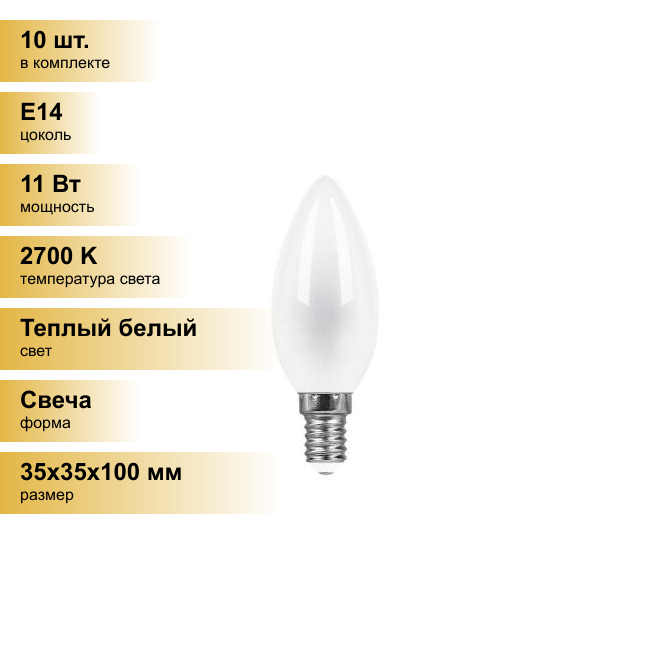 Feron (10 шт.) Лампа светодиодная Feron E14 11W 2700K Свеча Матовая LB-713 38005