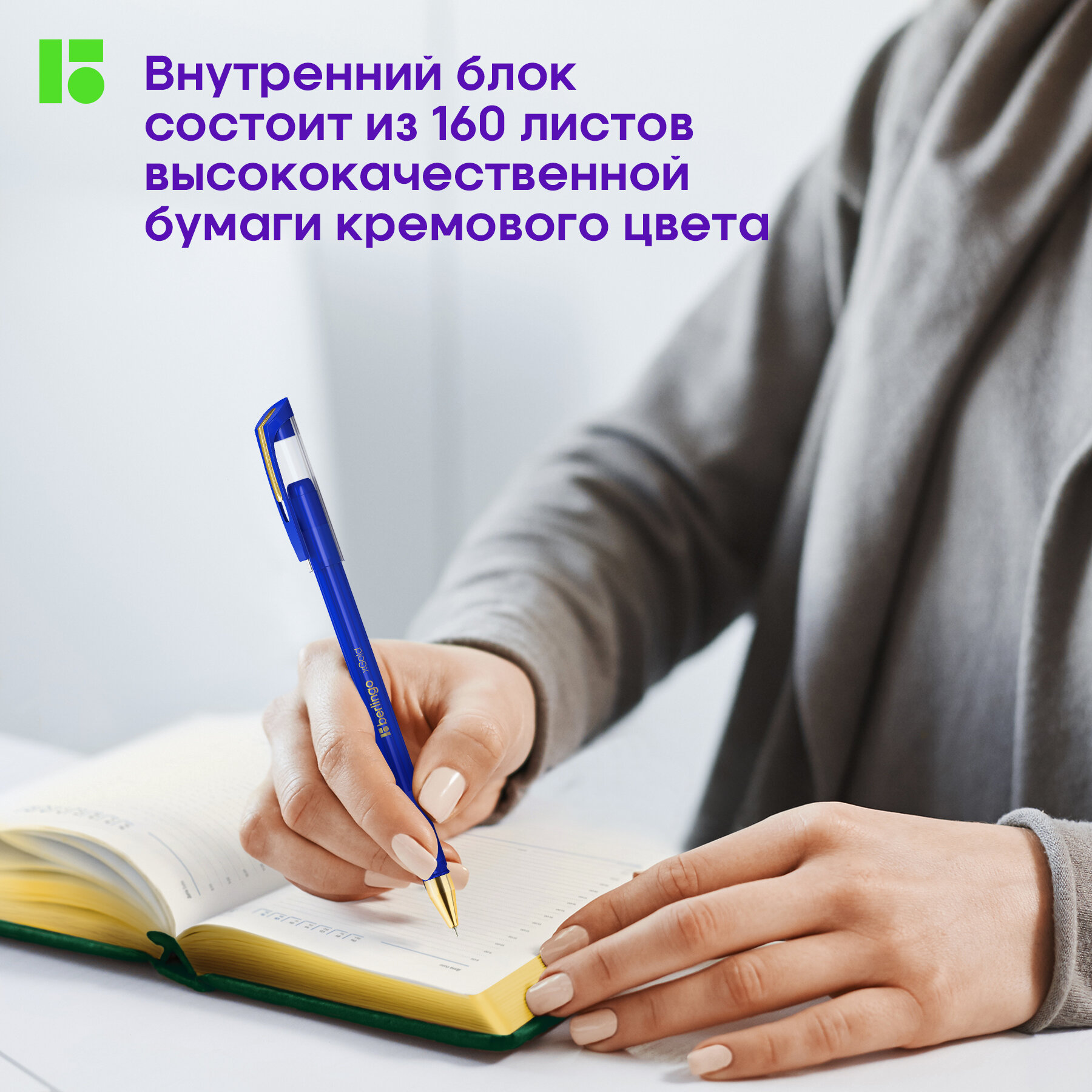 Ежедневник недатированный Berlingo "xGold" зеленый, A6, 160 листов, обложка экокожа, золотой срез
