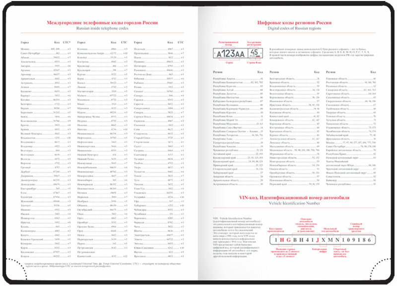 | Особенности | закругленные углы / ляссе / перфорация уголков / прошивка по периметру обложки / справочная информация |