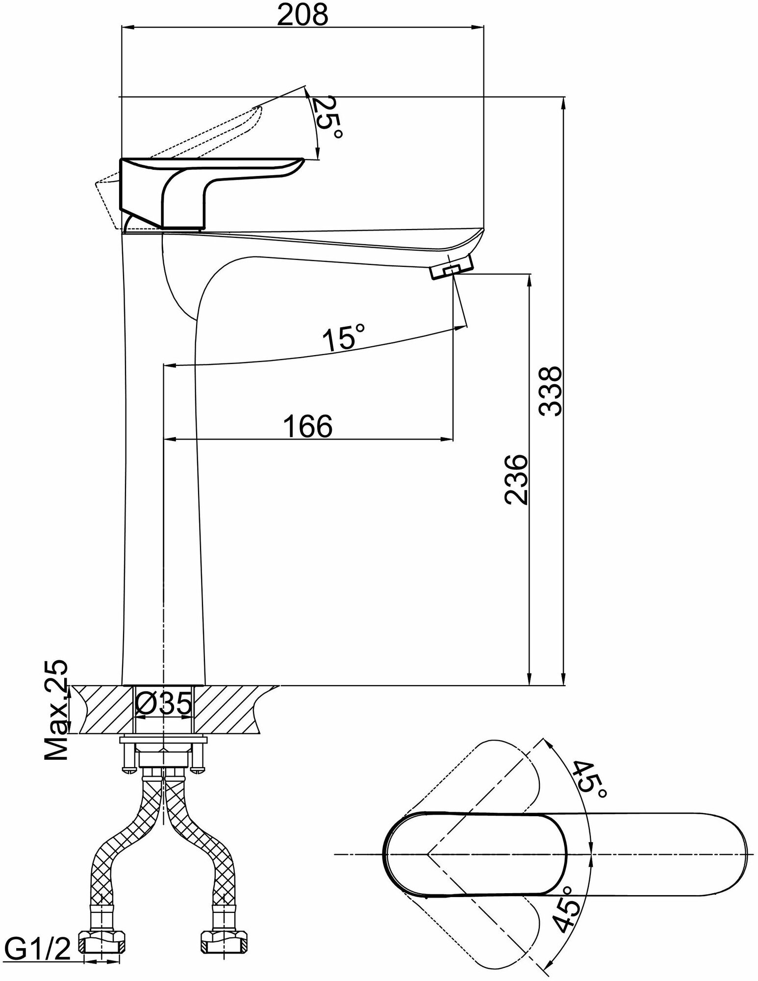 | Угол поворота рукоятки вертик. | 25 градусов |