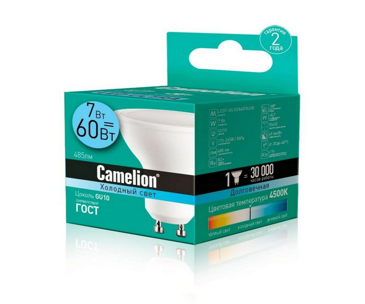 Ниже Вы можете прочитать отзывы на Лампа светодиодная Camelion 11655, GU10, GU10, 7 Вт, 4500 К, ознакомится с подробными характеристиками, посмотреть интересные обзоры и фотографии на Лампа светодиодная Camelion 11655, GU10, GU10, 7 Вт, 4500 К.