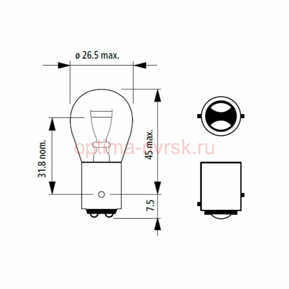 Лампочка 12V 21/5W P21/5W (BAY15d) Narva