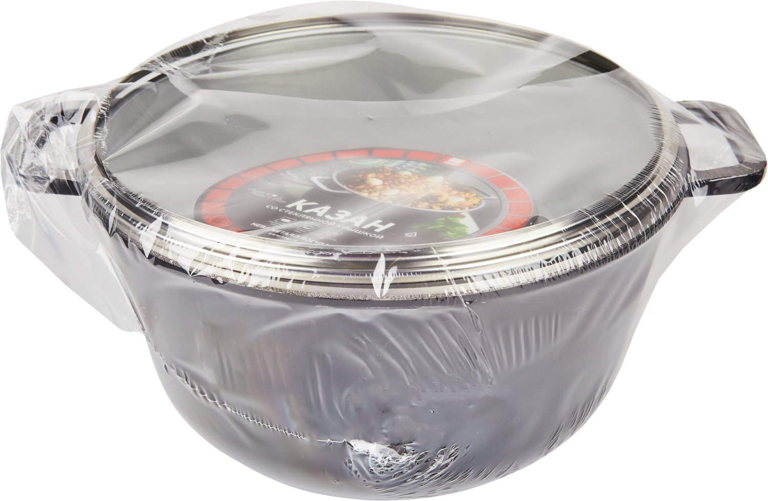 Казан - жаровня глубокий с декоративным покрытием со стеклянной крышкой, 7 л Нева Металл Посуда