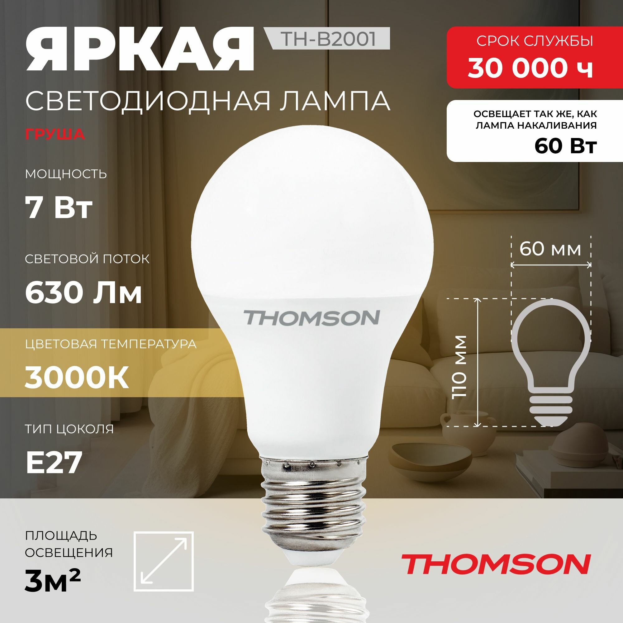 Лампа светодиодная Thomson TH-B2001, E27, A60, 7 Вт, 3000 К
