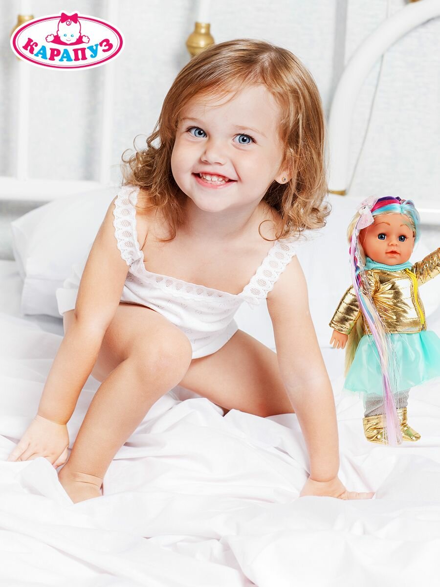 Кукла функциональная Карапуз Полина 35 см с цветными прядями, абвгдйка песня, с аксессуарами