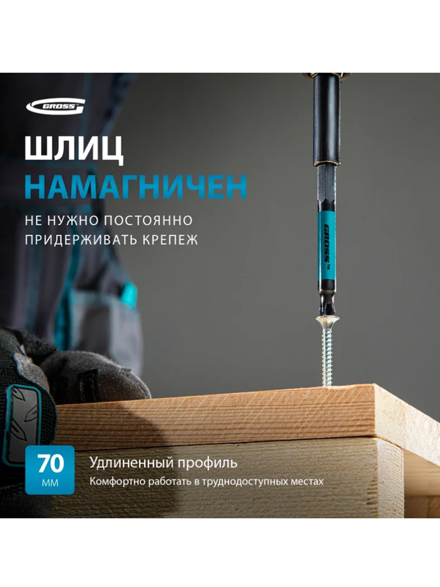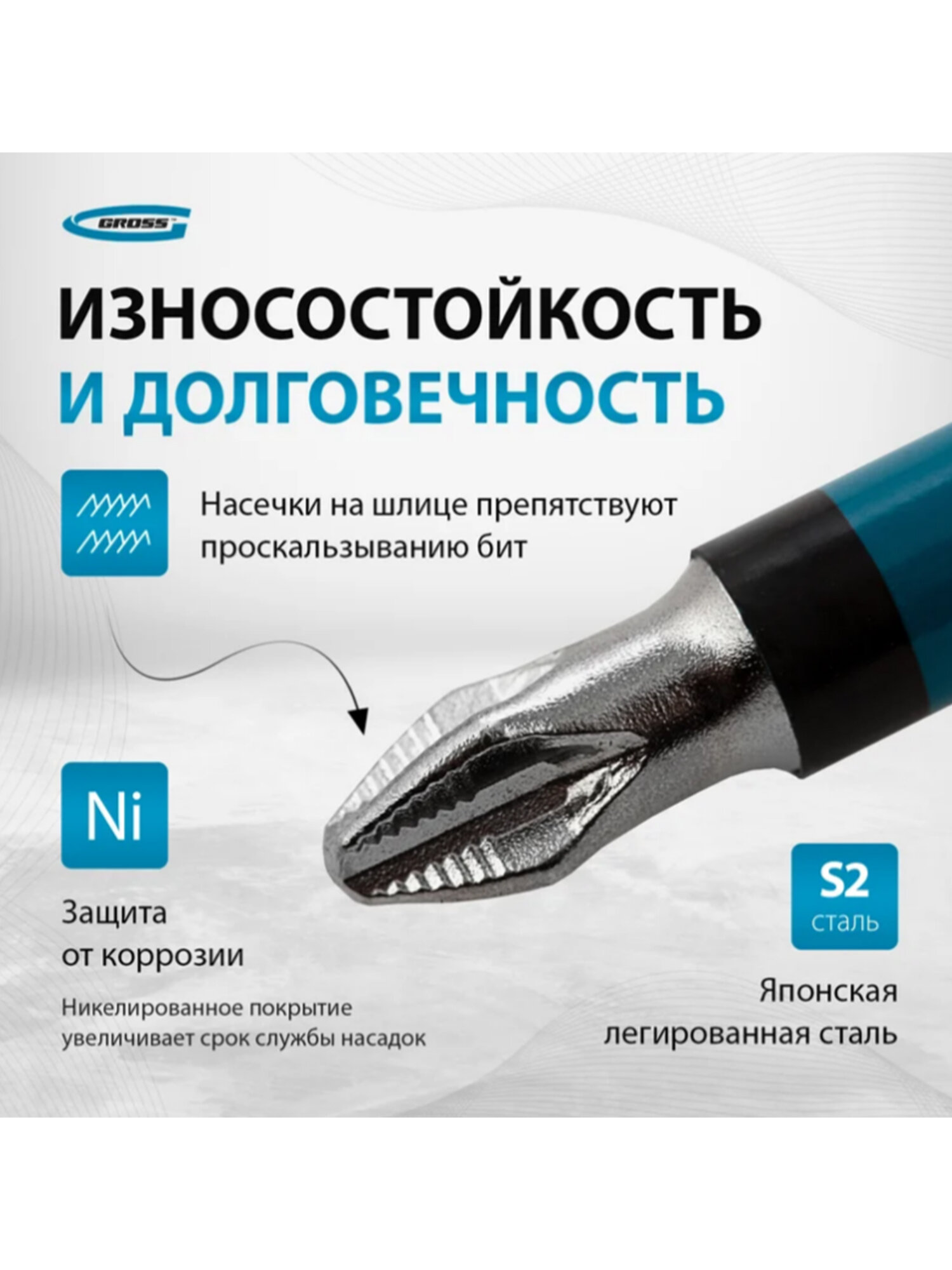 Набор магнитных бит GROSS PH2х70, сталь S2,