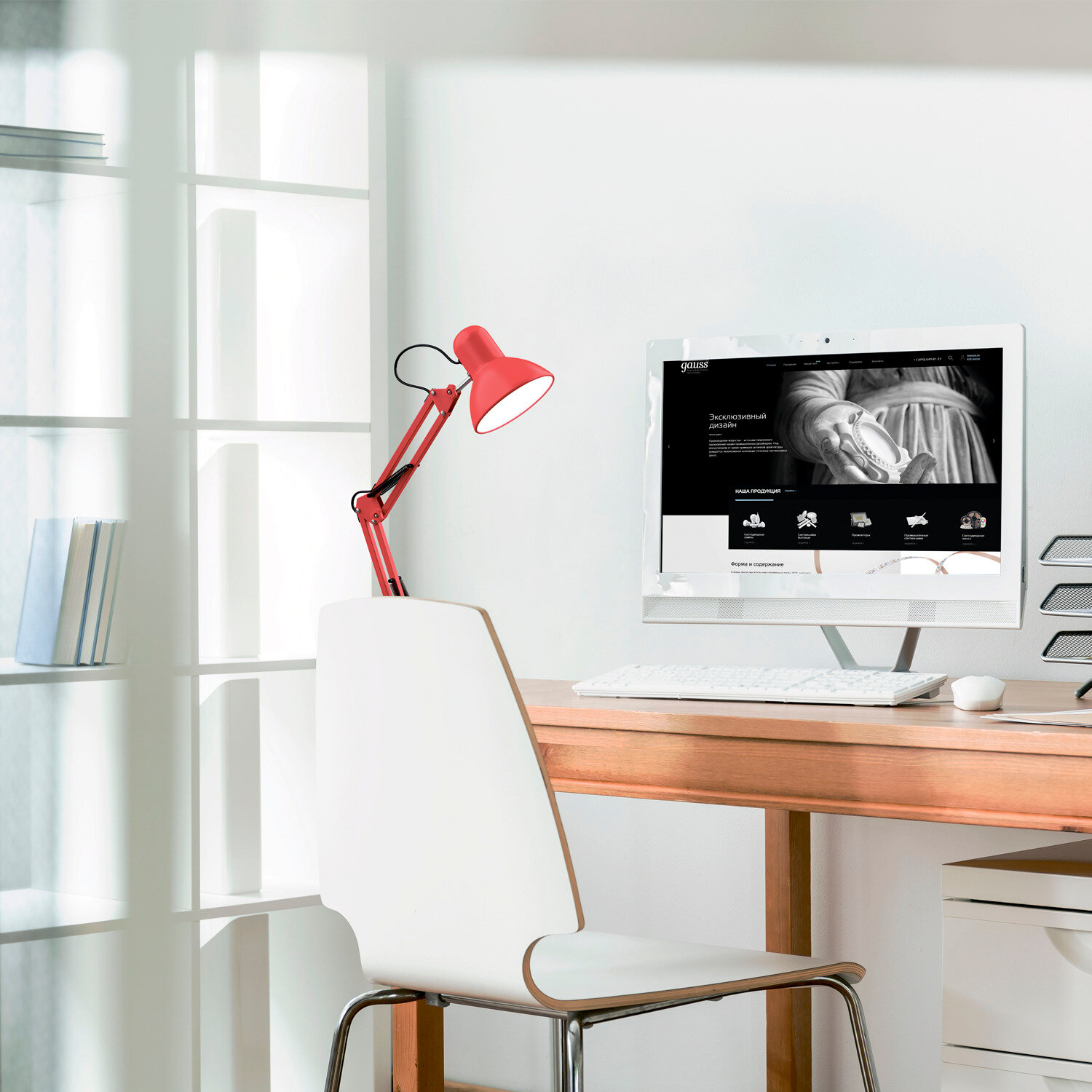 Светильник настольный Gauss модель GTL002 60W 220-240V E27 красный струбцина и основание 1/12