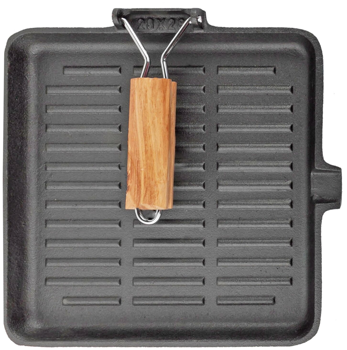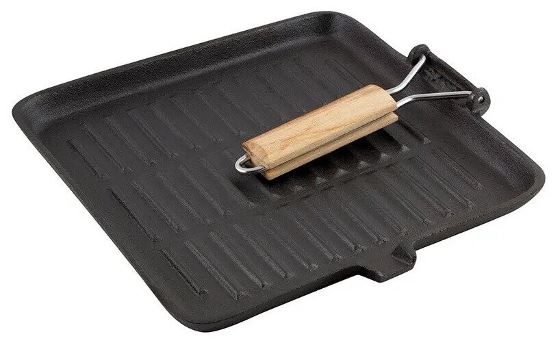 Сковорода-гриль чугунная с дерев складной ручкой, квадратной формы, PADELLA, 28*28 см