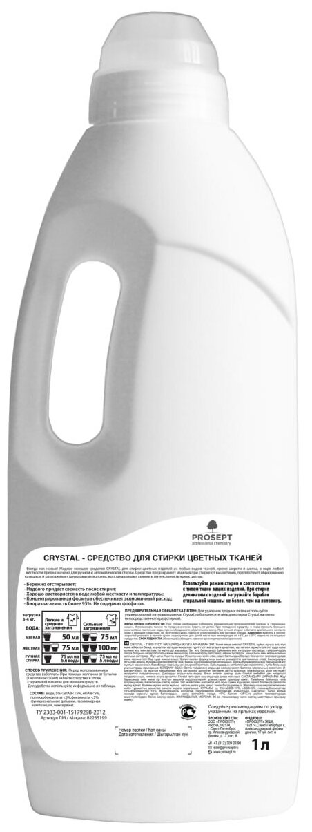 Prosept Crystal Жидкое моющее средство для стирки цветных тканей,1 л