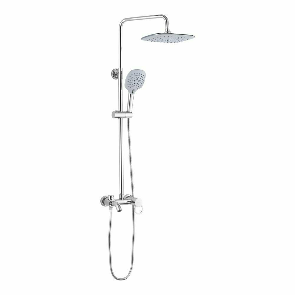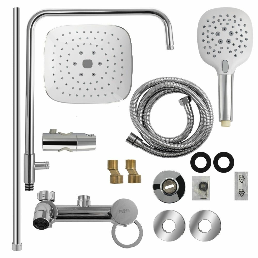 Система душевая BRIMIX с тропическим душем и двумя белыми квадратными лейками, телескопическая от 785 - 1120 мм, арт.3075