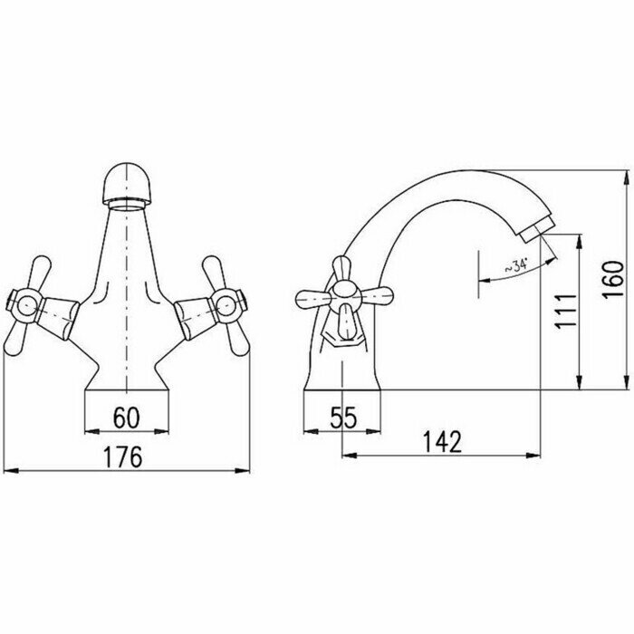 Смеситель для раковины (умывальника) Bronze de Luxe 10218/1, вентильный
