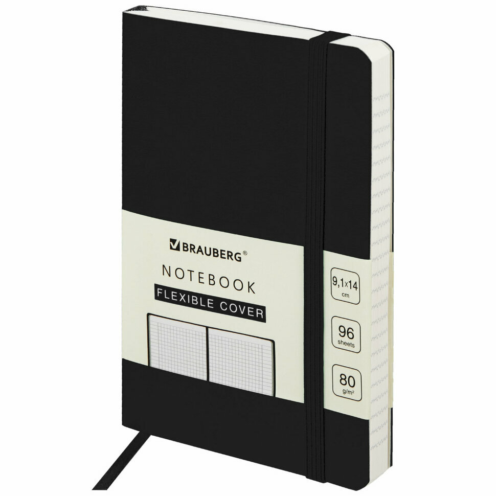 Блокнот малый формат (91х140 мм) А6, BRAUBERG ULTRA, под кожу, 80 г/м2, 96 л., клетка, черный, 113024, 113024