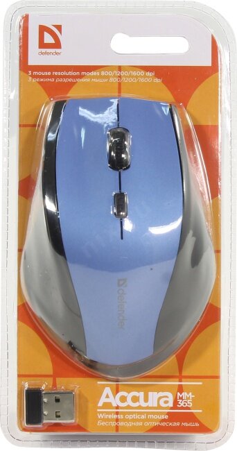 Купить Беспроводная оптическая мышь Defender Accura MM-365 синий, 6 кнопок, 800-1600 dpi