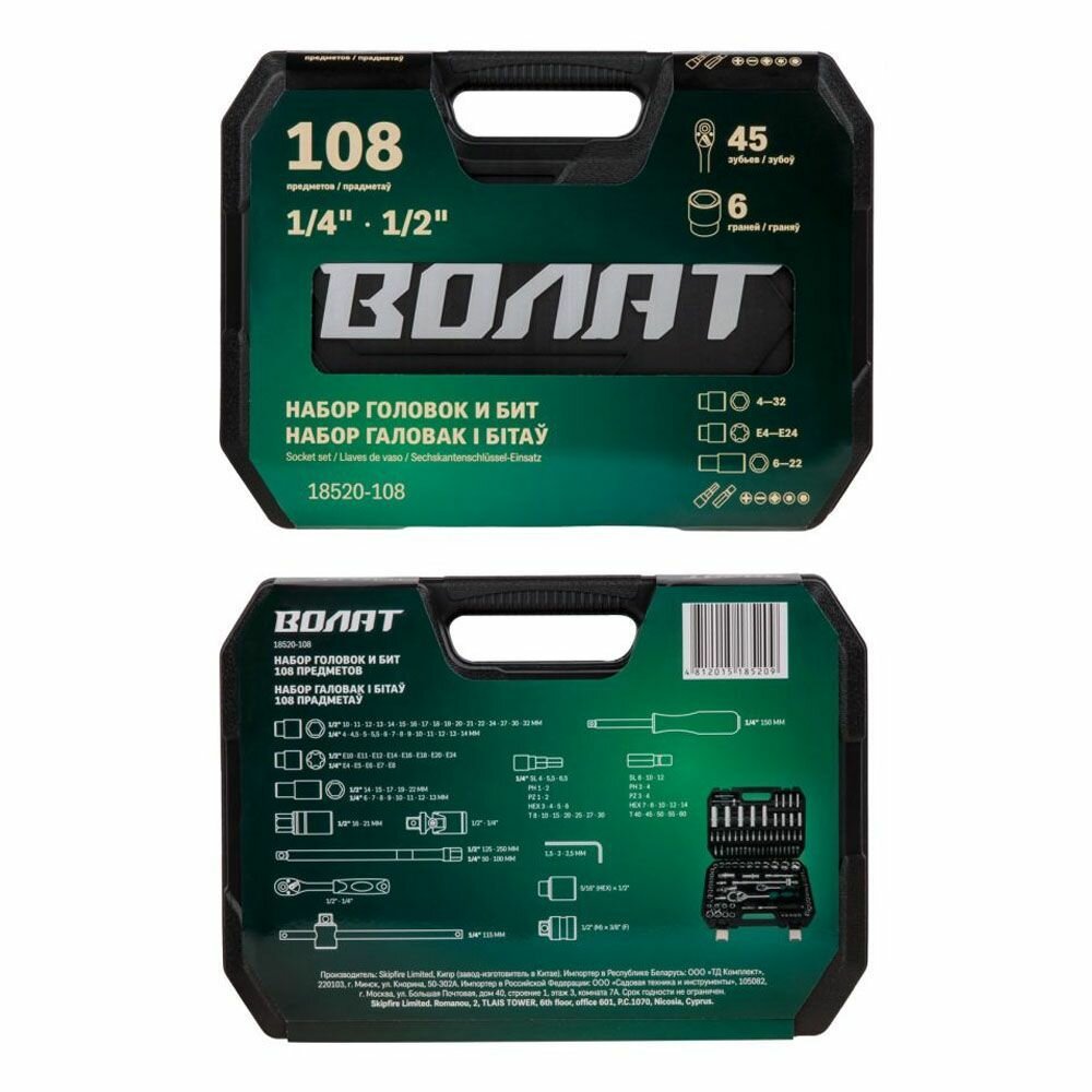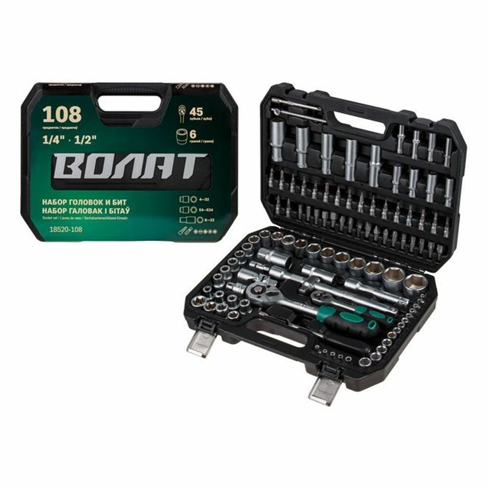 Набор инструментов Волат 1/4 , 1/2 6 граней 108 предметов 18520-108 .