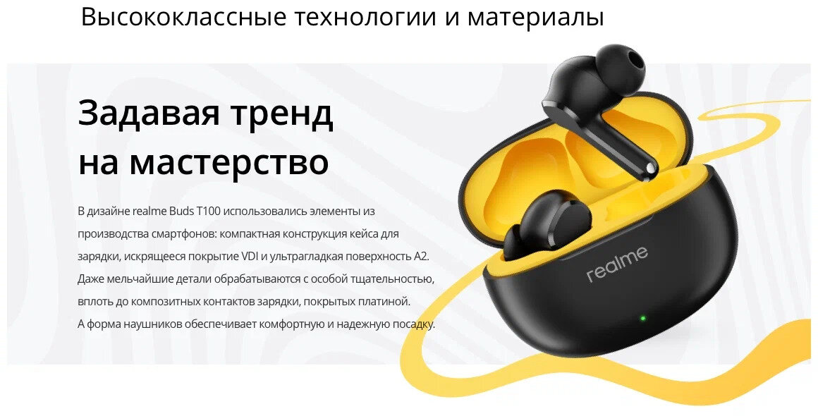 | Комплектация | realme Buds T100, руководство пользователя, амбушюры 6 шт |