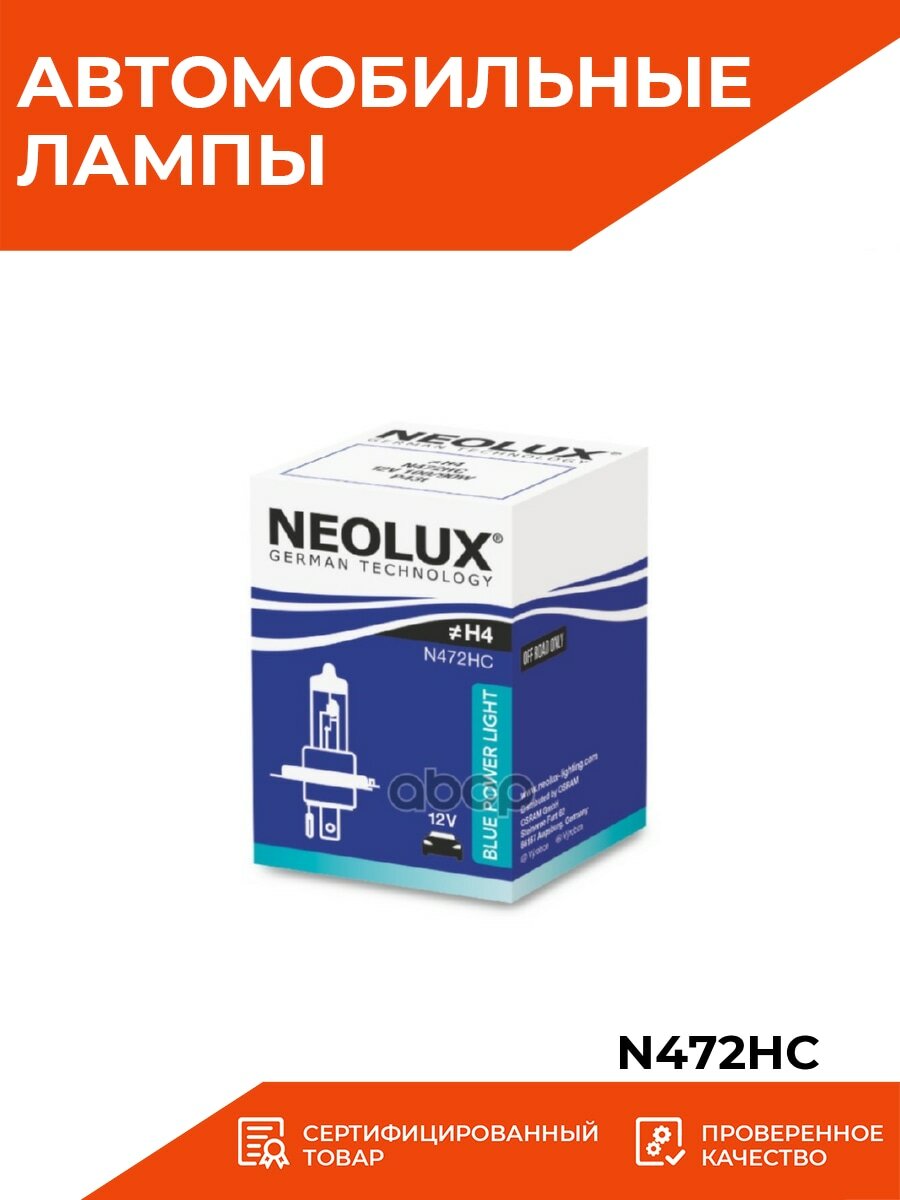 NEOLUX N472HC Лампа H4 12V-100/90W (P43t) BLUE POWER LIGHT (коробка 1шт.) ()