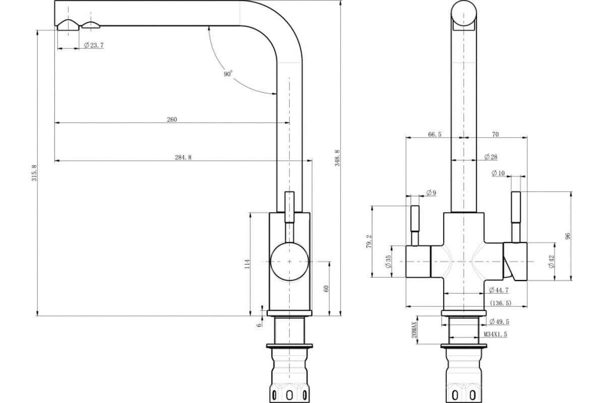 | Высота излива | 315 мм |