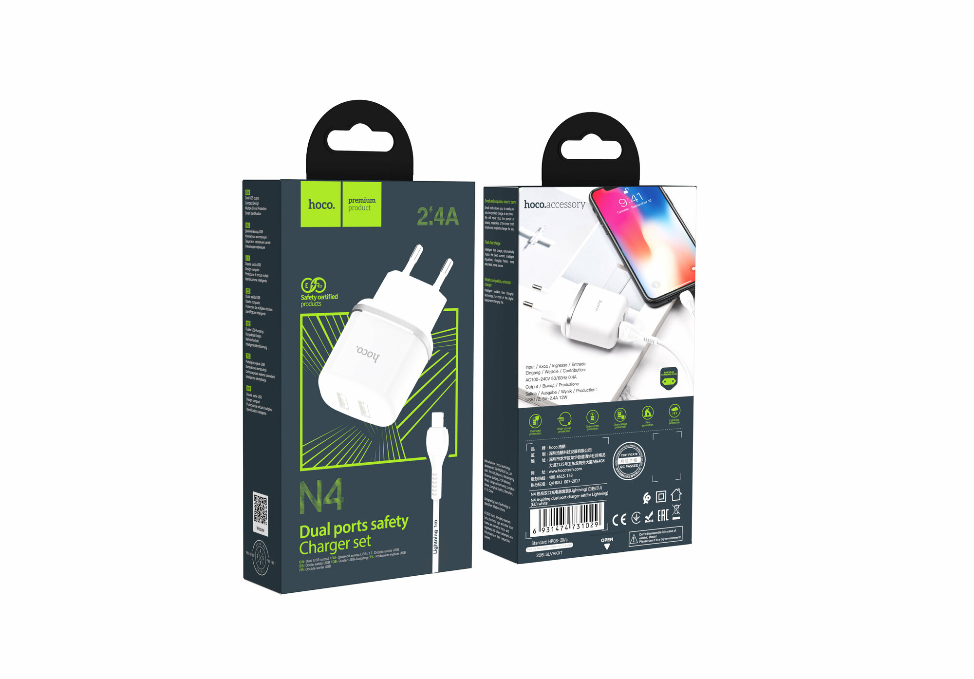 HOCO N4 Aspiring dual port charger set(for Lightning)(EU) black