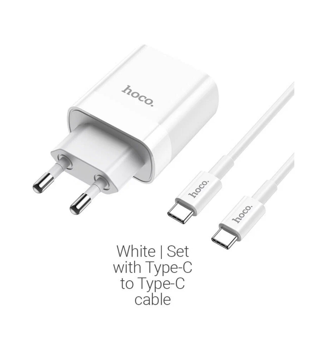 Сетевое зарядное устройство HOCO C80A Plus 1xUSB + 1xUSB Type-C с кабелем Type-C - Type-C, 3.1A, 20W, белый