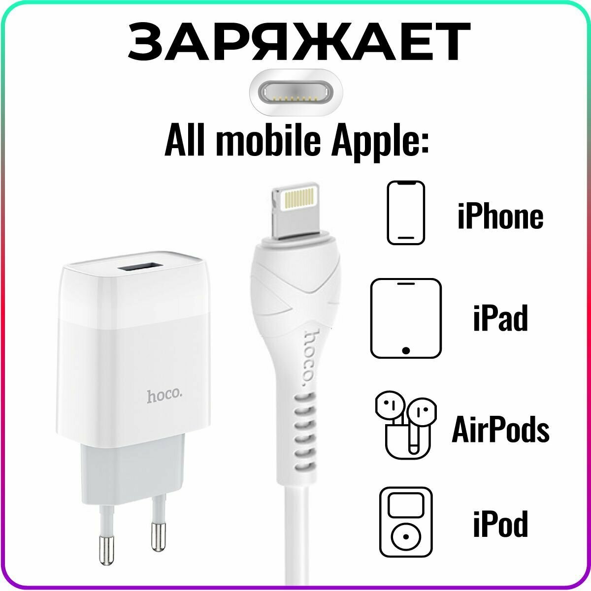 Быстрая зарядка для iPhone, iPad, AirPods в комплекте с кабелем Apple Lightning / адаптер питания для телефона / Сетевое зарядное устройство / hoco. C72A