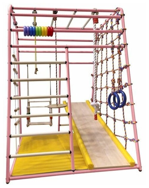 | В комплекте | веревочная лестница, гимнастические кольца, горка, канат, качели, лестница, мат, сетка для лазания, тарзанка, трапеция |