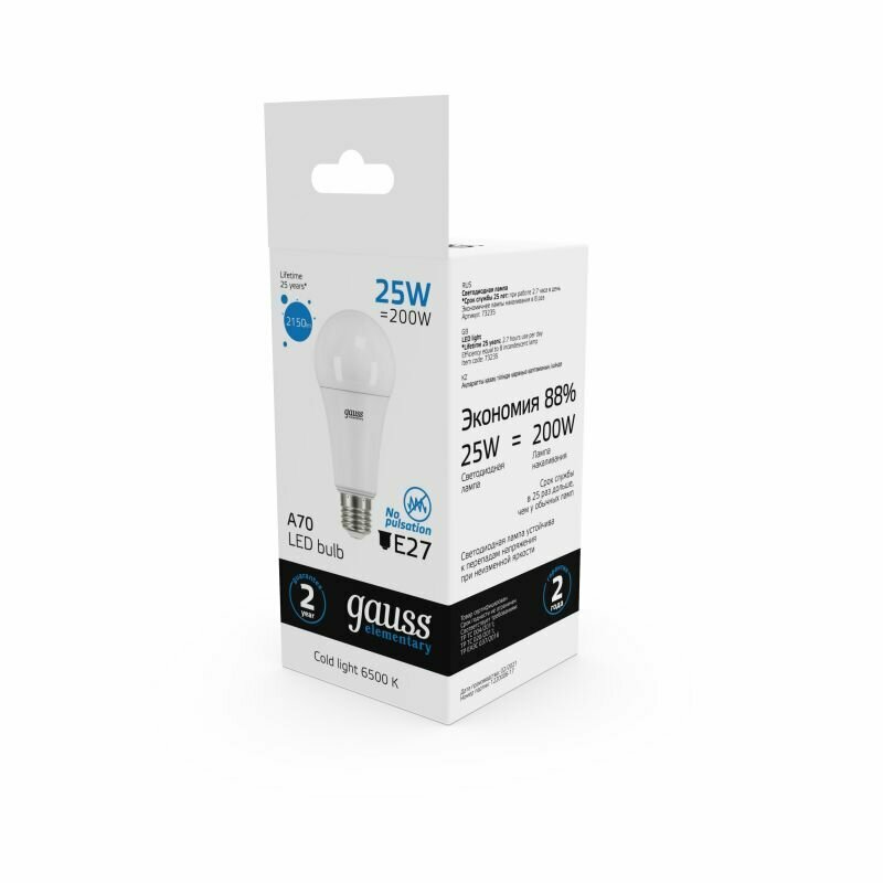 Лампа Gauss Elementary A70 25W 2150lm 6500K E27 LED 1/10/50