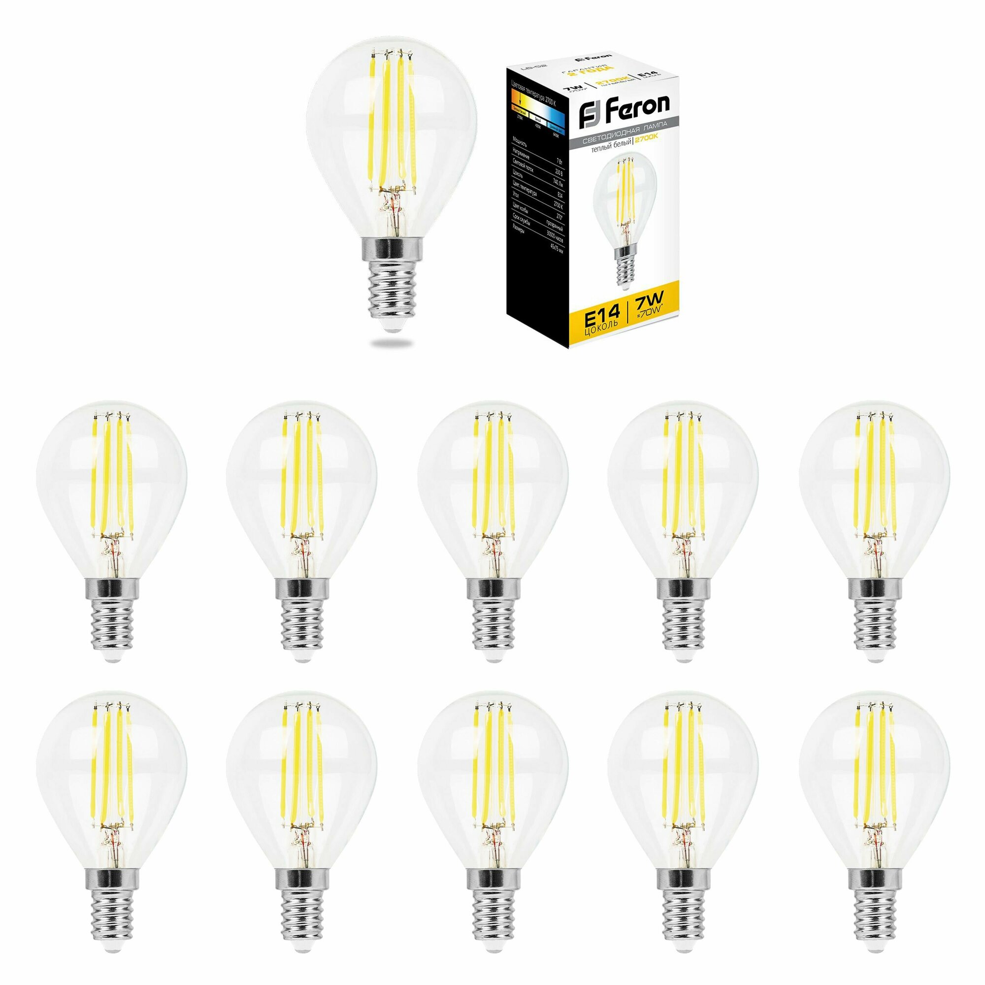 Упаковка светодиодных ламп 10 шт. Feron LB-52 25874, E14, G45, 7 Вт, 2700 К