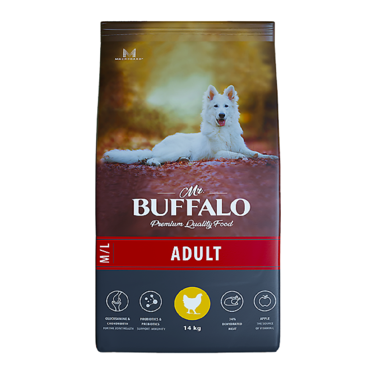Mr.Buffalo Adult M/L Корм для собак средних и крупных пород (курица) 14кг