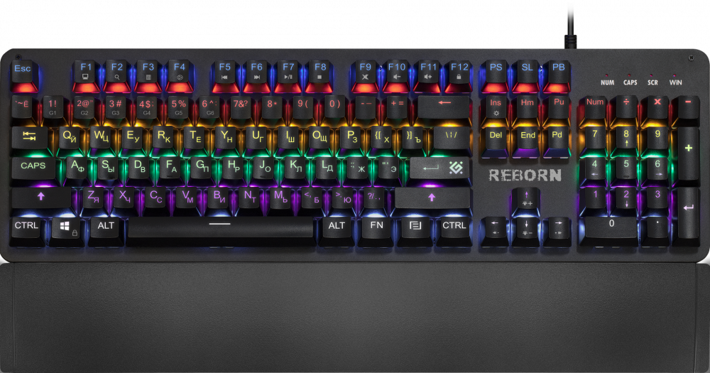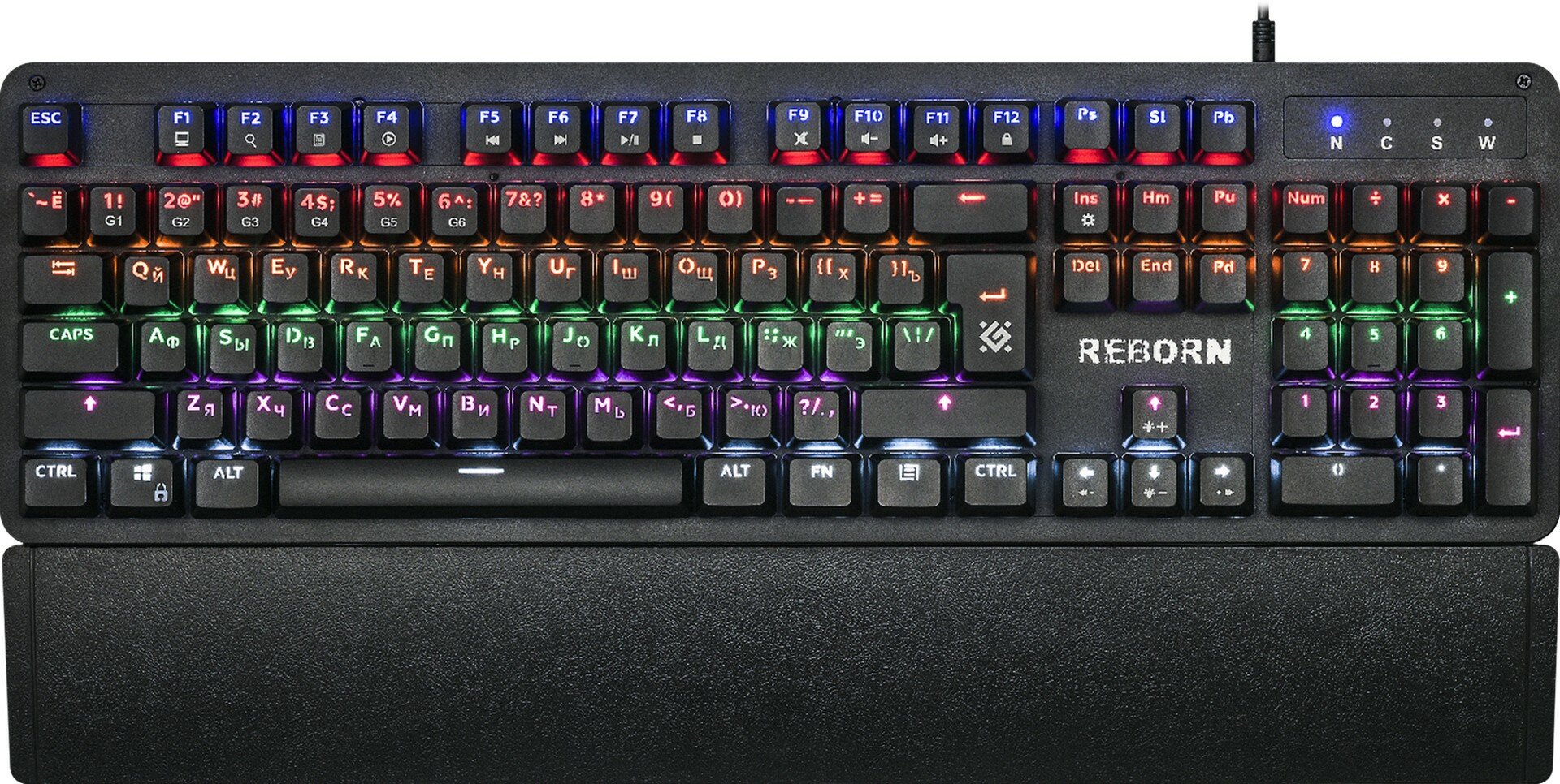 Клавиатура игровая Defender Reborn GK-165DL RU механическая 104 кл, литые буквы, кабель 1.5 м