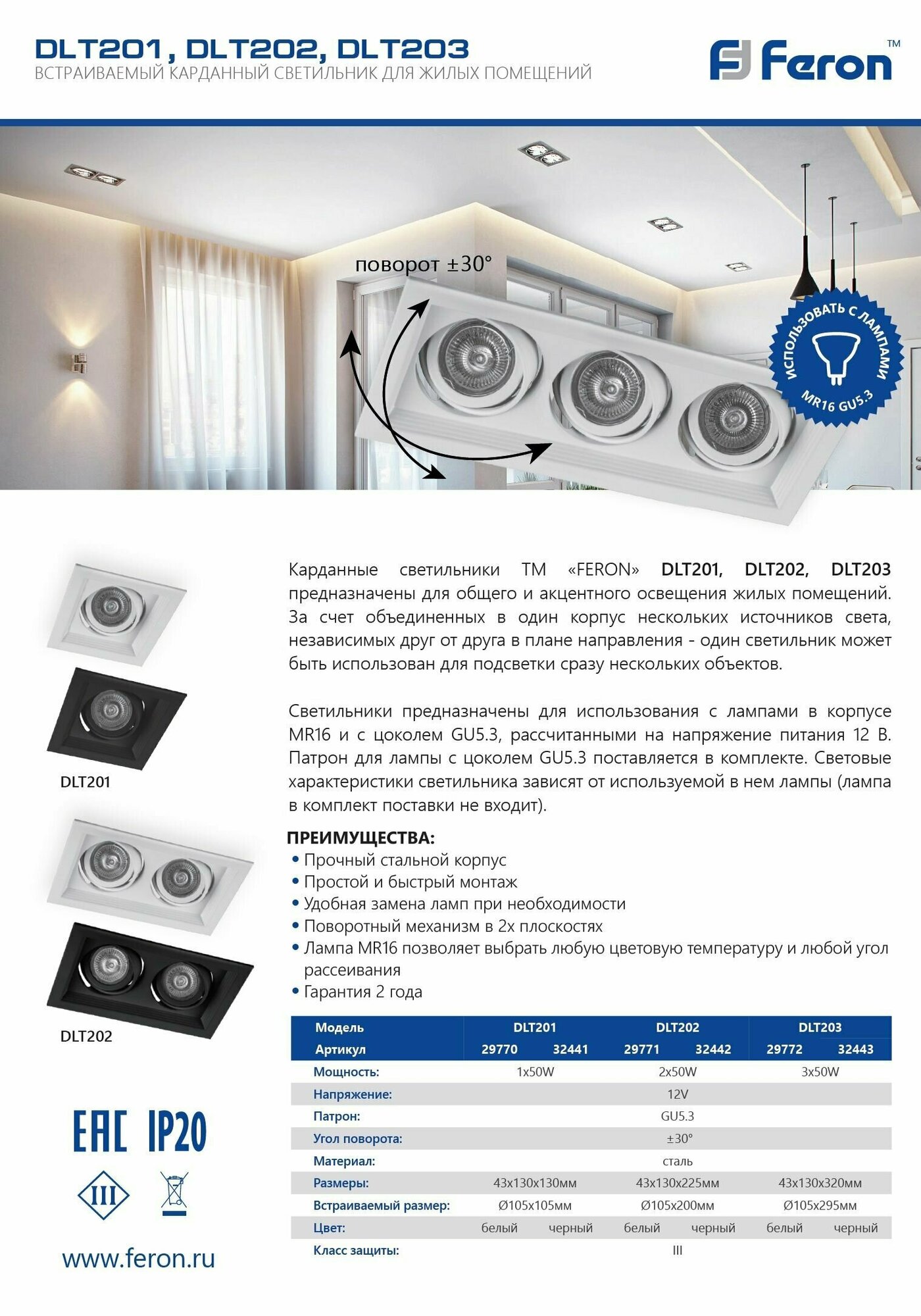 | Дополнительная информация | тип лампы MR16 |