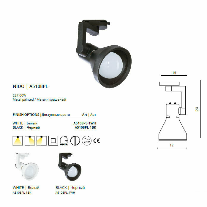 Трековый светильник A6252PL-1WH E27