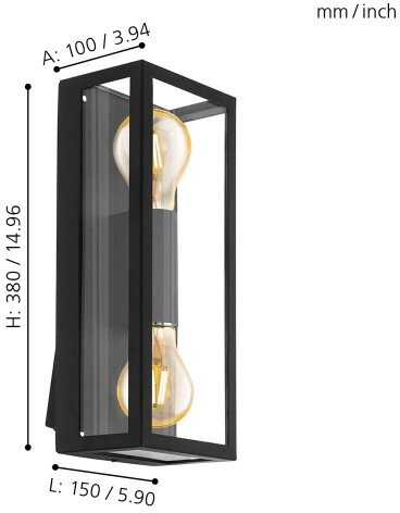 Eglo 98273 Уличный светильник настенный ALAMONTE 1, 2х40W(E27), , L150, B75, H380, A100, , оцинк. Сталь 98273