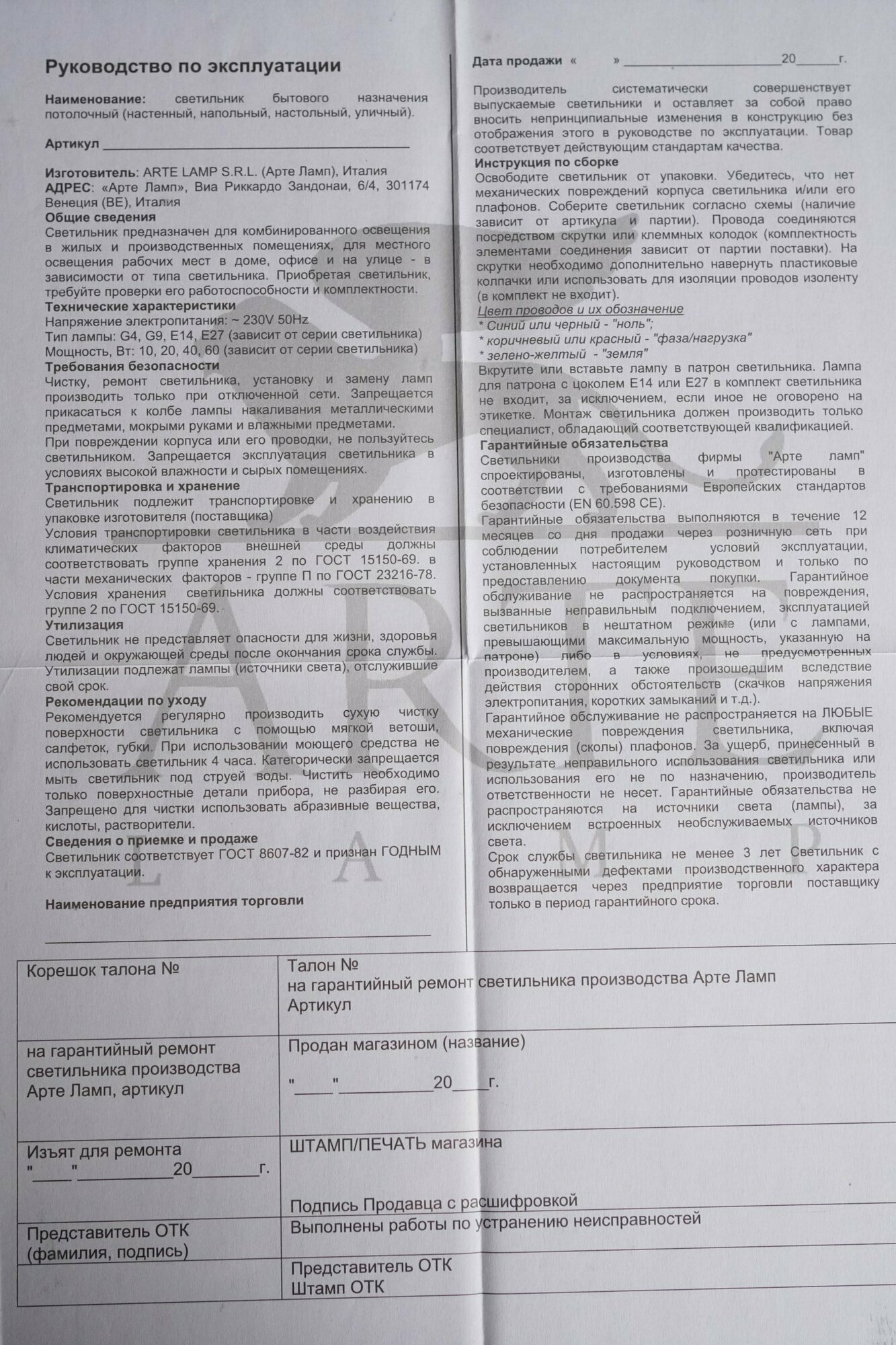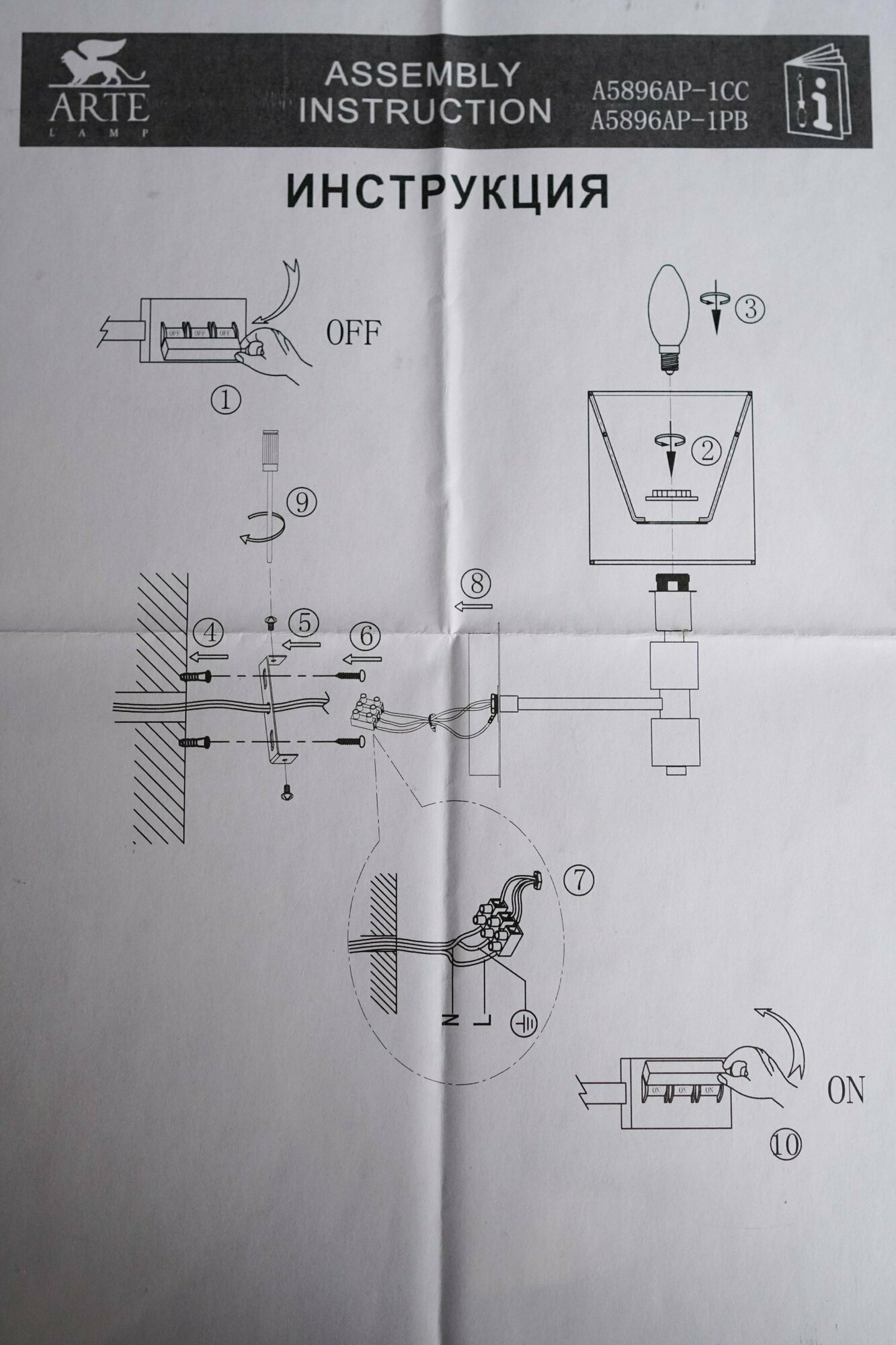 | Комплектация | бра Arte Lamp A5896AP-1PB |