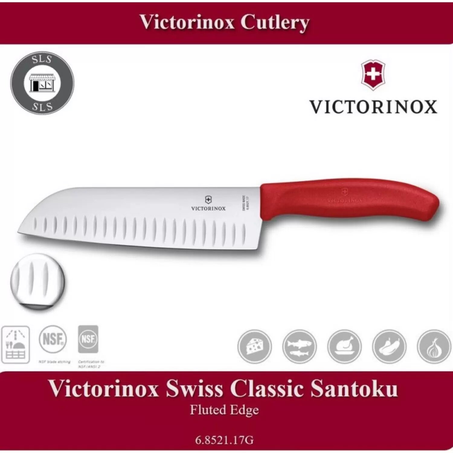 Купить Нож кухонный Victorinox Swiss Classic (6.8521.17B) стальной сантоку лезв.170мм прямая заточка красны