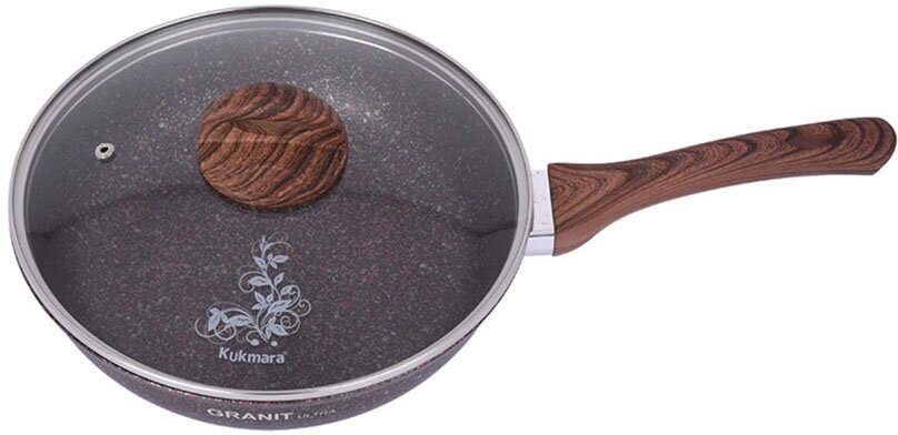 KUKMARA Сковорода Granit ultra, d26 см, стеклянная крышка, съёмная ручка, антипригарное покрытие