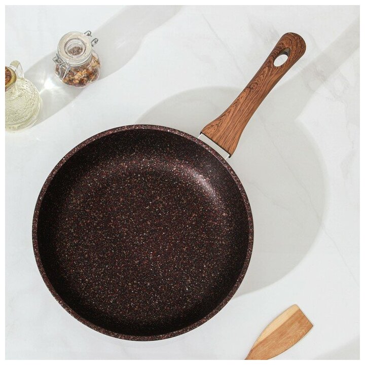 Сковорода Kukmara Granit ultra, d 26 см, стеклянная крышка, съемная ручка, антипригарное покрытие
