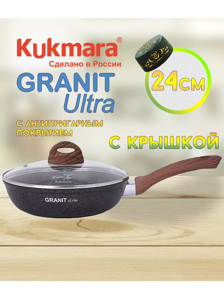 Купить Сковорода Kukmara 24см со стеклянной крышкой Granit ultra original (сго241а)