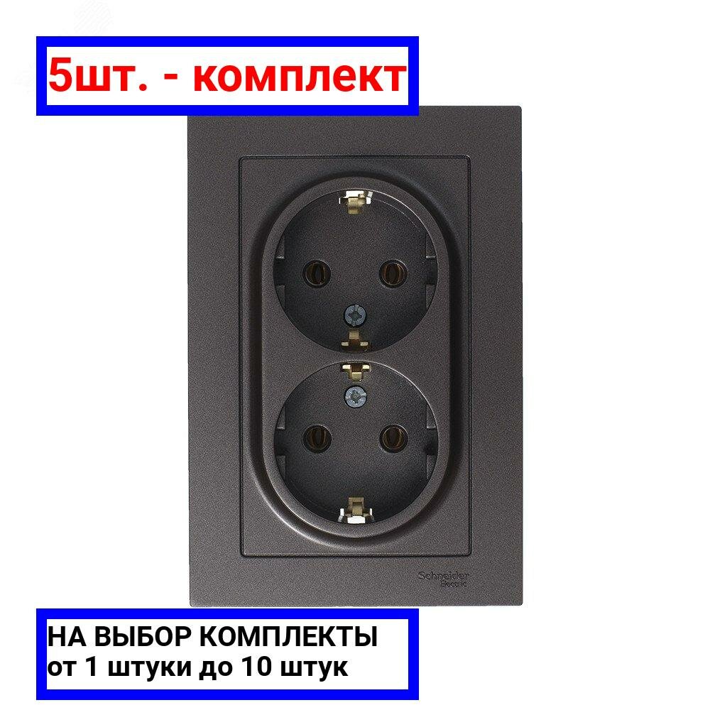 Розетка электрическая двухместная Systeme Electric Atlas Design с заземлением, в сборе 16А, Карбон ATN001024 - 5 шт.
