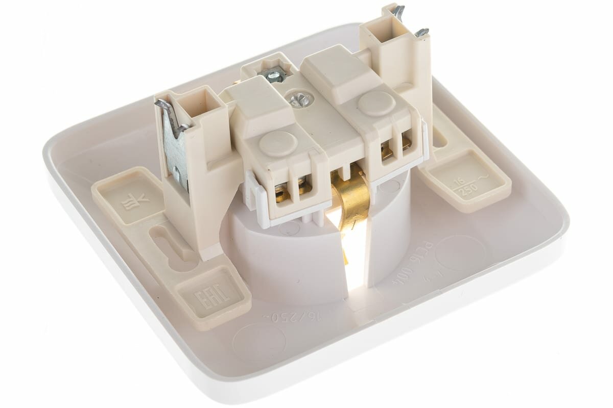 SE Wessen Прима внутр Бел Розетка 1-ая с/з с защитными шторками 16А (в сборе)(опт.упак.)