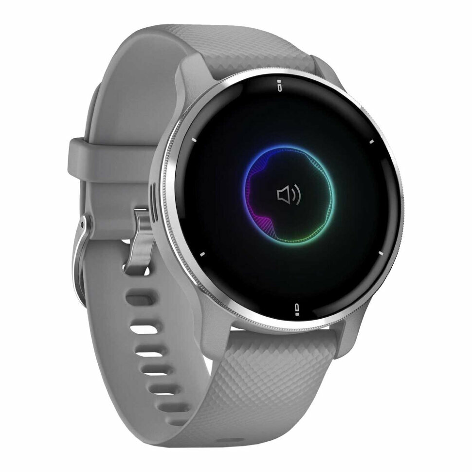 умные часы VENU 2 PLUS смарт часы с серебристым безелем и силиконовым серым ремешком Garmin (010-02496-10)