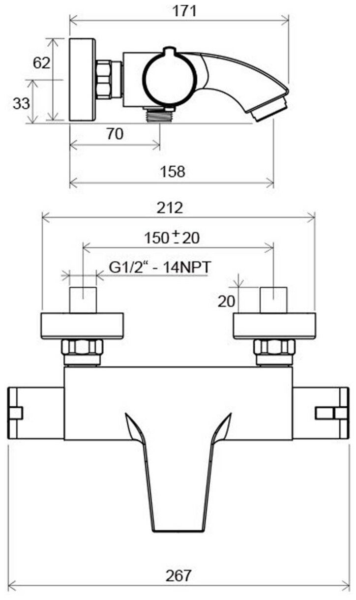 Термостат Ravak Termo 200 TE 082.00/150 для ванны с душем X070046