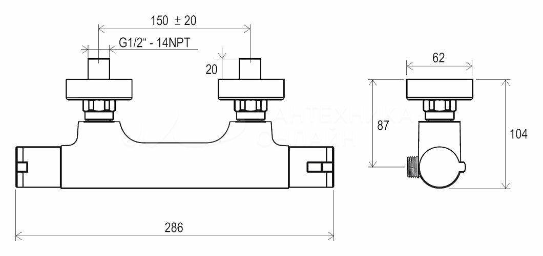 Смеситель для душа Ravak термостатический Termo TE 032.00/150 настенный