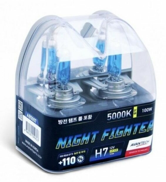 Лампа галогенная Avantech Night Fighter H7 12V 55W 5000K, 2 шт. (блистер)