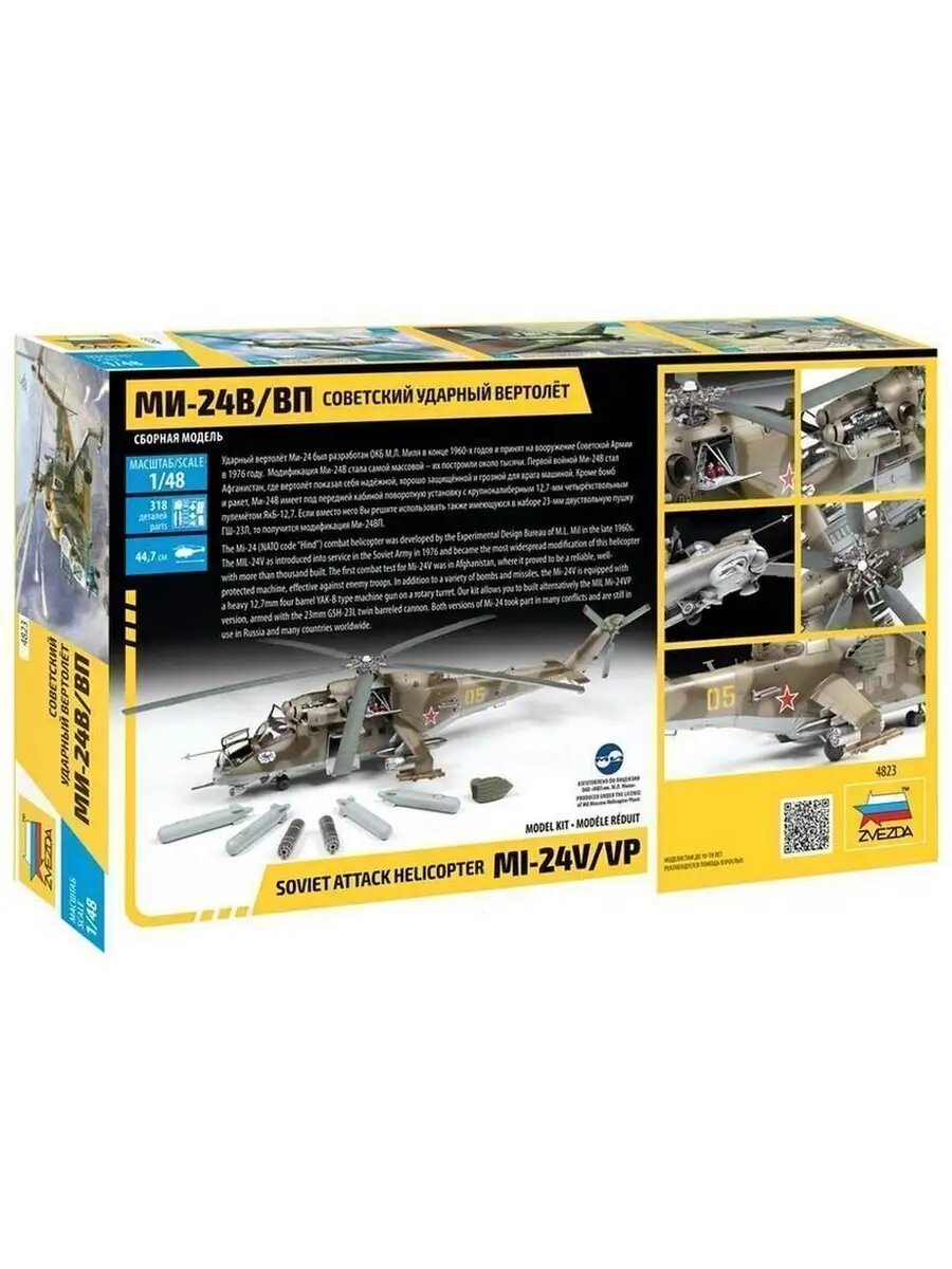 Сборная модель ZVEZDA 1/48 Советский ударный вертолет Ми-24В/ВП 4823