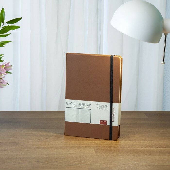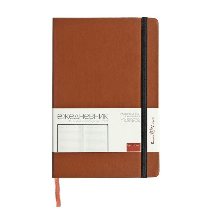 BrunoVisconti Ежедневник недатированный А5, 160 листов MEGAPOLIS VELVET, твёрдая обложка, искусственная кожа, ляссе, на резинке, тонированный блок 70 г/м2, светло-коричневый