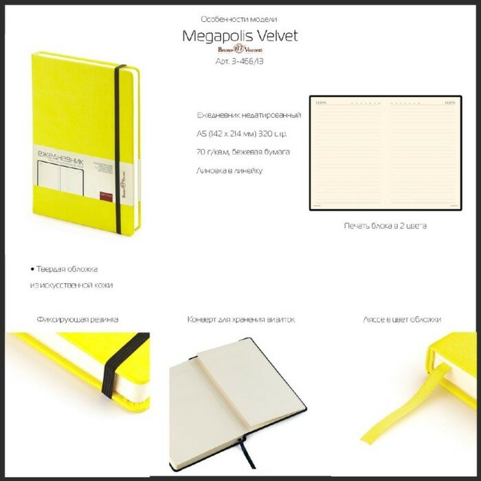 Ежедневник недатир А5 160л MEGAPOLIS VELVET,тв обл иск кож,ляссе, рез, тон бл 70г/м2,св-кор 10183562