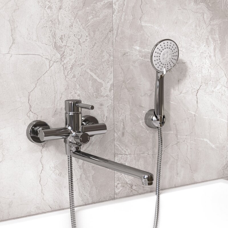 Купить Смеситель для ванны и душа с длинным изливом и лейкой
