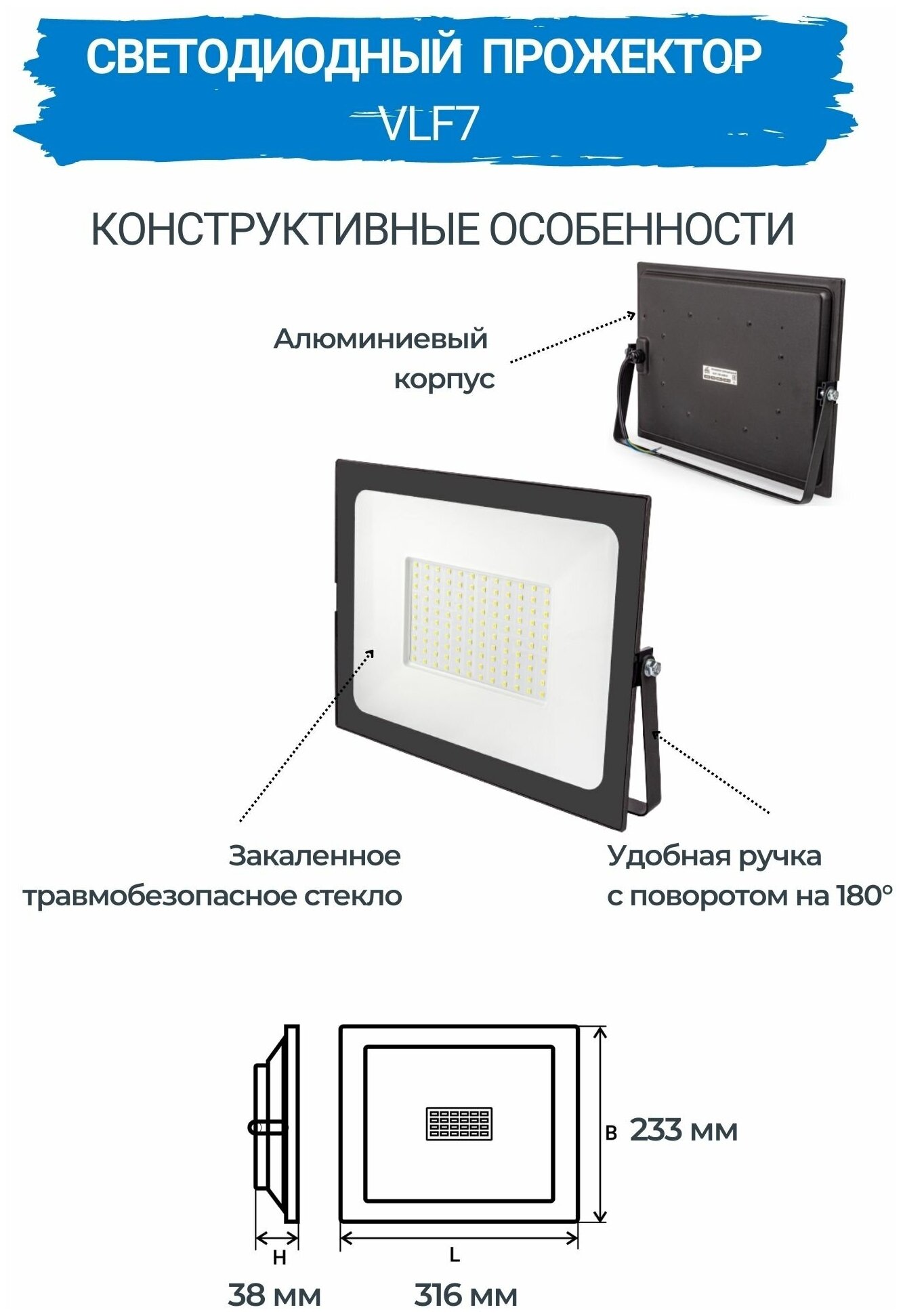 VKL electric Прожектор LED 150W SMD VLF7-150-6500-B 13500Lm 220V, IP65, черный 1/10 1013405 интересное: