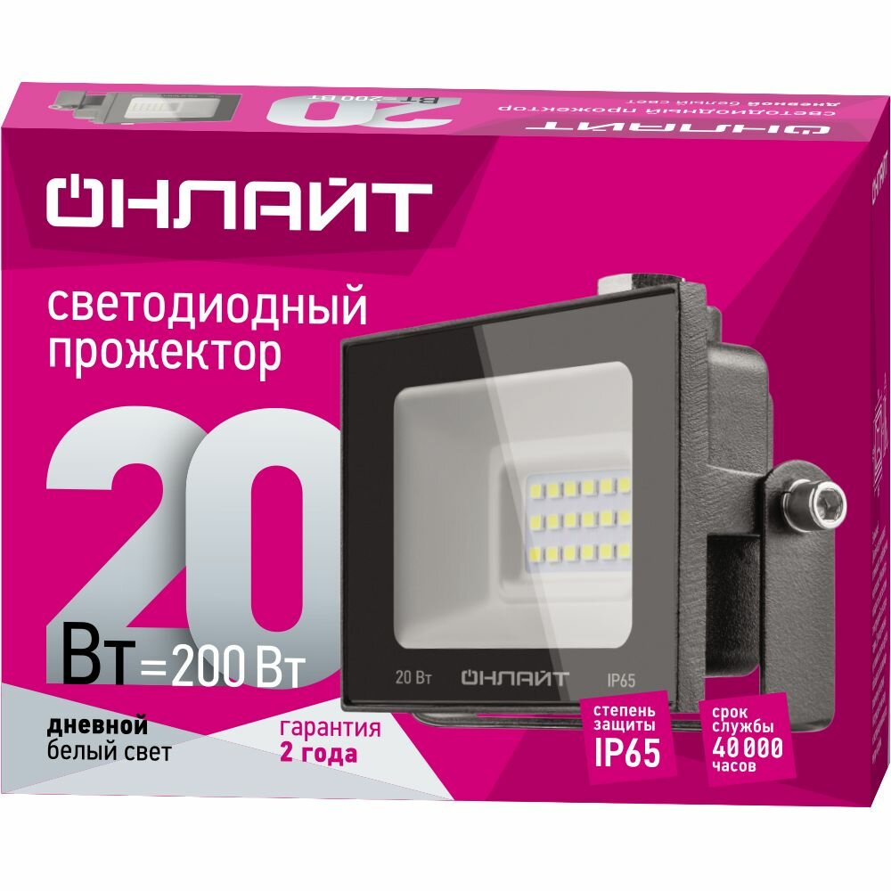 Прожектор светодиодный ДО-20w 6000К 1600Лм IP65 онлайт (61949 OFL)