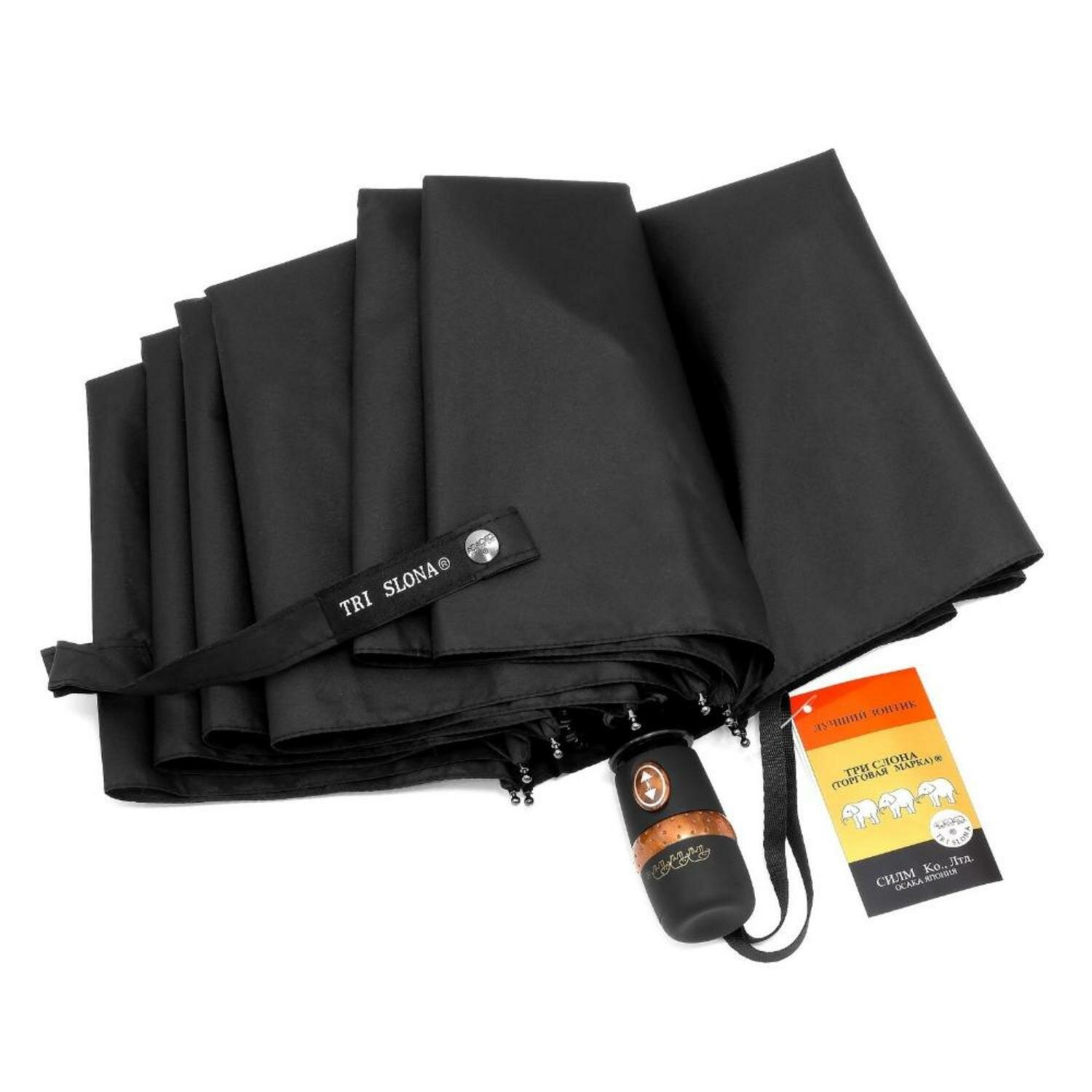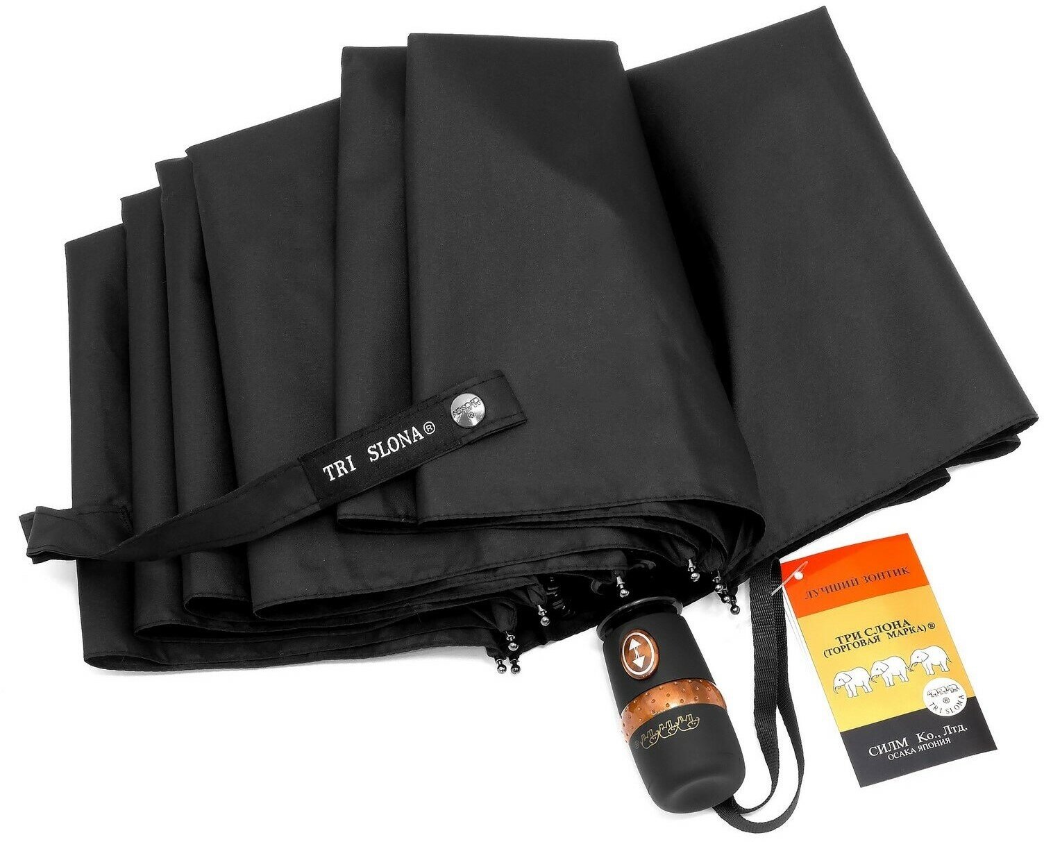 Зонт Три слона, автомат, 3 сложения, купол 107 см., 10 спиц, система «антиветер», черный